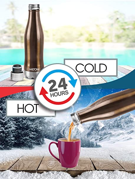 Milton New Duke 750 Thermosteel Hot and Cold Water Bottle, 620 ml, Coffee Brown