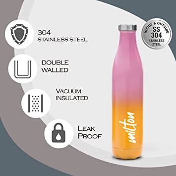 Double walled insulated stylish dual-tone gloss water bottle is made up of a durable 18/8 stainless steel, built to withstand the demands of everyday use