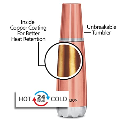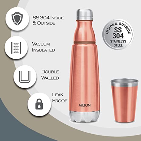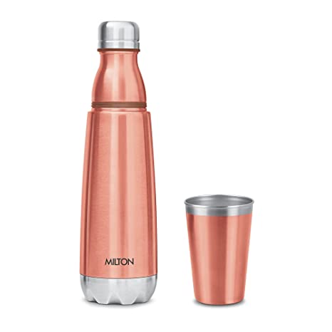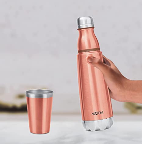 BUY Milton Vertex Steel 750 Thermosteel Hot or Cold Water Bottle With Stainless Steel Tumbler, 700 ml, Metalic Copper at www.kitabwalastore.com