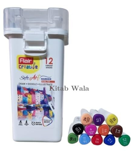 Unleash your creativity with the Flair Creative Soft Art Marker Set — a premium pack of 12 rich and vibrant shades designed for smooth coloring, blending, and artistic expression. Perfect for students, designers, and art lovers, these markers offer soft ink flow for effortless application and stunning results every time.
