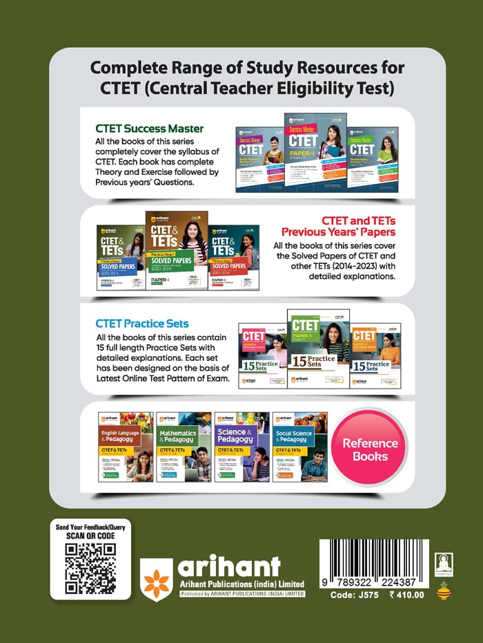 "Arihant CTET & TETs Previous Year Solved Papers – Paper 2" एक उत्कृष्ट समाधान पुस्तक है, जिसमें पिछले वर्षों के CTET और विभिन्न राज्य स्तरीय शिक्षक पात्रता परीक्षाओं (TETs) के सुलझाए हुए प्रश्नपत्र शामिल हैं। यह पुस्तक आपको न सिर्फ परीक्षा पैटर्न से परिचित कराती है, बल्कि वास्तविक परीक्षा अनुभव भी प्रदान करती है।