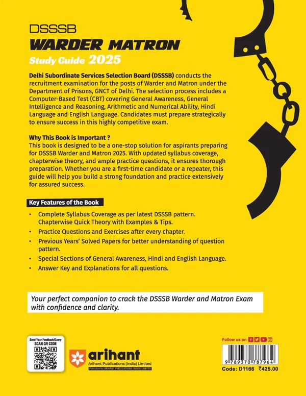 This Study Guide is a one-stop preparation resource for the DSSSB Warder / Matron 2025 Exam. With detailed explanations, practice MCQs, and authentic solved papers, it helps candidates build a strong foundation and improve accuracy for the final exam.