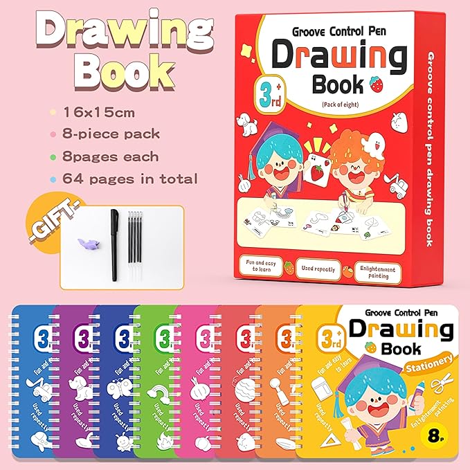 【Grooved writing books for kids】Environmentally friendly materials,Made of environmentally friendly materials, no odor, preschool kids,kids coloring books,preschool learning activities,caring for children's growth environment.