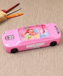 TOYS LEAGUE CAR PENCIL BOX WITH GAME AND LOCK – PINK