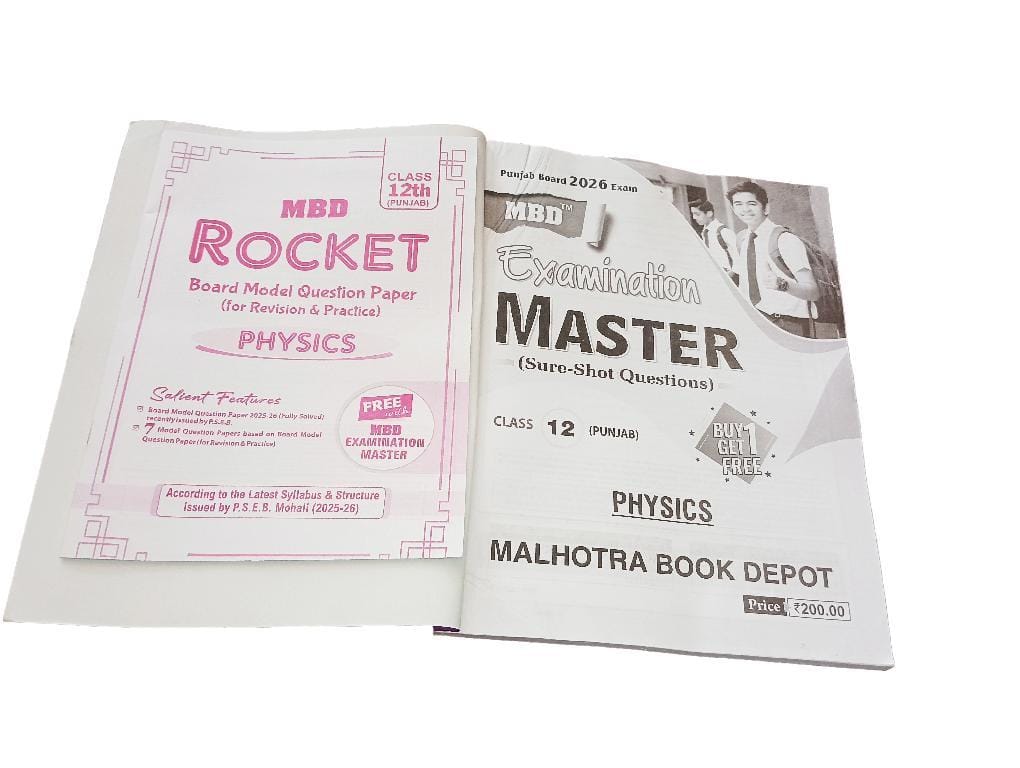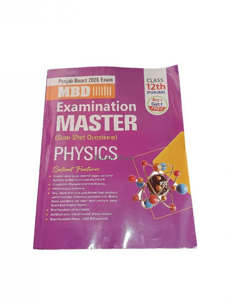 Prepare thoroughly for your Class 12 Physics Board Exams with the MBD Examination Master Physics (2026 Edition). This book is carefully designed as per the Punjab School Education Board (PSEB) syllabus and the latest exam scheme. With chapter-wise solutions, important questions, numericals, and the fully solved 2025 Board Paper, it equips students with the tools they need to excel in Physics.