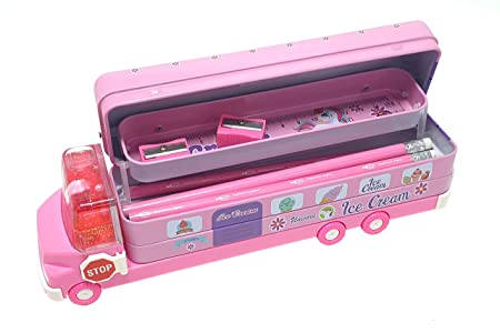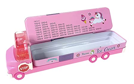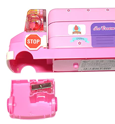 CRACKLES DOUBLE DECKER MAGIC ICE CREAM MULTI-LEVEL METAL BUS UNICORN PENCIL CASE