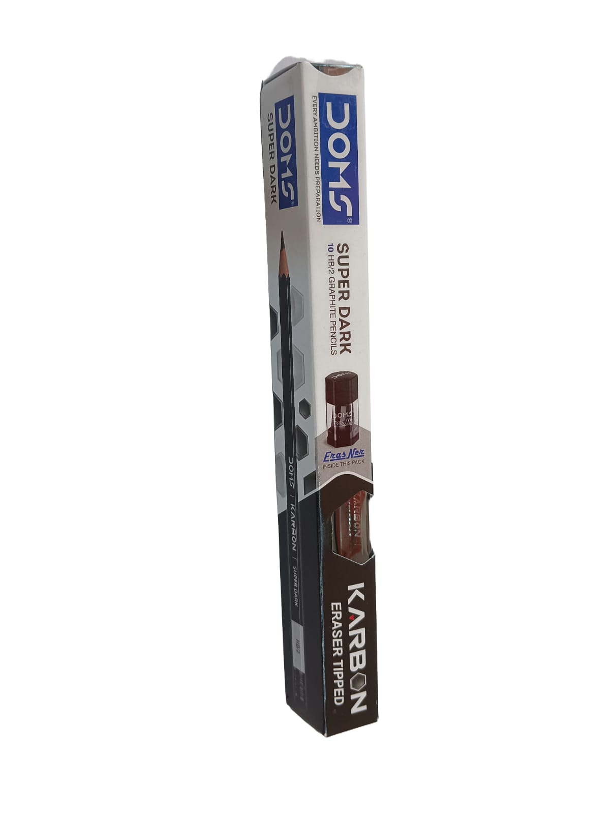 Here is a clear and attractive product description for the DOMS Karbon Eraser Tipped Super Dark Pencil, designed for your website www.kitabwalastore.com: