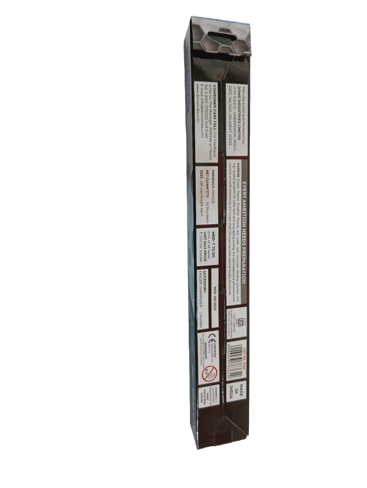 Experience smooth, bold writing with the DOMS Karbon Eraser Tipped Super Dark Pencil, now available at www.kitabwalastore.com. Designed for performance and convenience, this pencil comes with a built-in eraser tip and super dark graphite, making it perfect for school, exams, and daily writing needs.