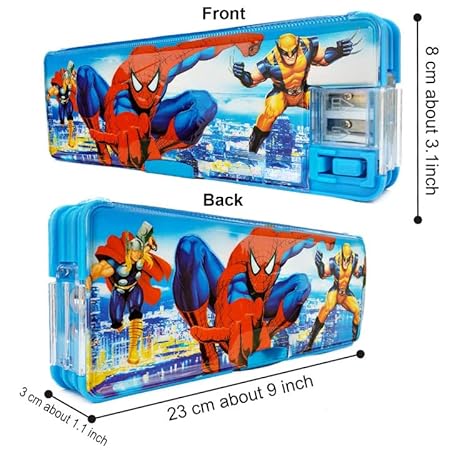Add a touch of superhero excitement to your child’s school essentials with this Spiderman LED Light Double Side Pencil Box! Designed with vibrant Spiderman graphics and built-in LED lights, this pencil box not only keeps stationery organized but also brings fun and flair to study time.