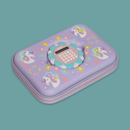 Add a touch of magic and functionality to your school essentials with the ZORSE Unicorn Hard Case Pencil Pouch with Calculator in a beautiful purple finish. Designed with a charming unicorn print and built-in calculator, this hard case pouch is perfect for kids who want style, durability, and smart features in one!