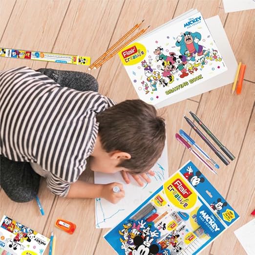 Make learning and creativity extra fun with the Flair Creative Mickey and Friends Kit! Featuring the beloved Disney characters Mickey Mouse, Minnie, and their friends, this colorful stationery set is perfect for school, drawing, and everyday creative activities.