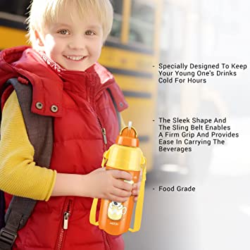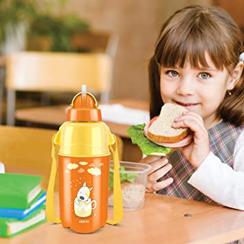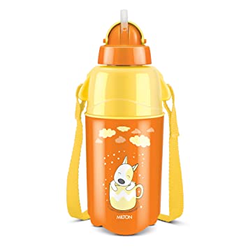 MILTON Kool Trendy 400 Plastic Insulated Water Bottle with Straw for Kids, 370 ml, Orange, School Bottle, Picnic Bottle, Sipper Bottle, Leak Proof, BPA Free | Food Grade | Easy to Carry