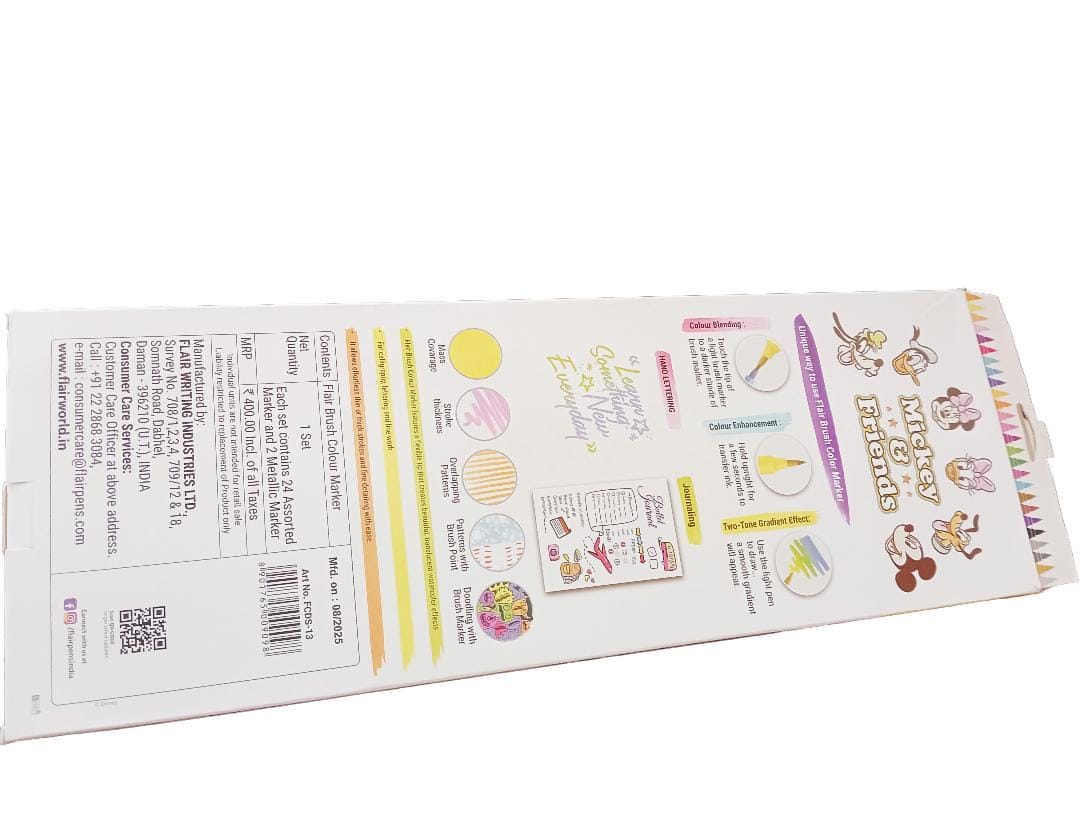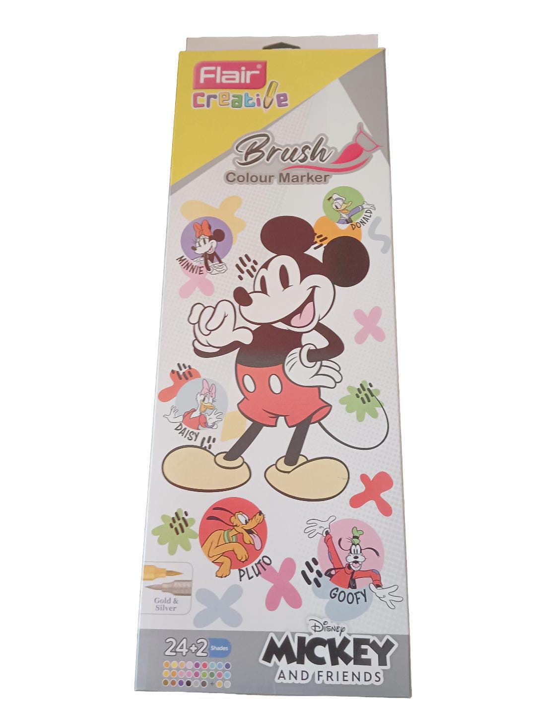 Unleash creativity with the Flair Creative Brush Marker Set (24+2) featuring adorable Mickey & Friends characters. Designed for kids, hobby artists and colouring lovers, this premium marker set offers smooth blendable strokes perfect for sketching, shading, journaling, calligraphy and artwork.