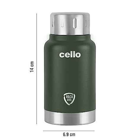 BUY Cello Duro Top Double Wall Stainless Steel Water Bottle, 1 Piece, 180 ml, Military Green at www.kitabwalastore.com