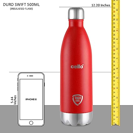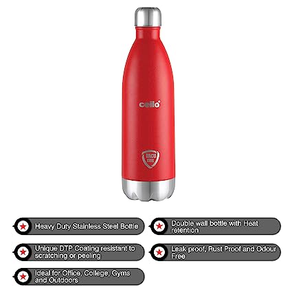 BUY Cello Duro Tuff Steel Series- Swift Double Walled Stainless Steel Water Bottle with Durable DTP Coating, 350ml, Red at www.kitabwalastorwe.com