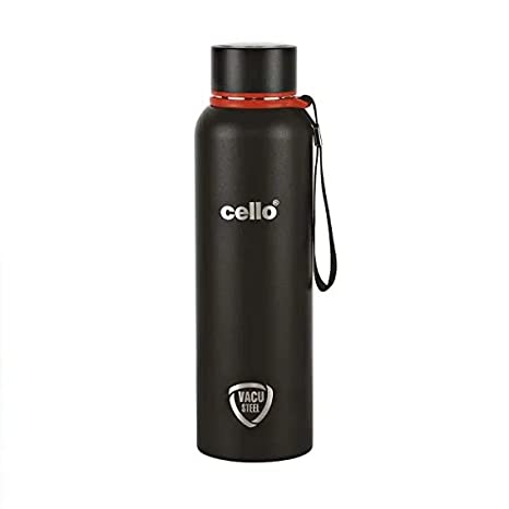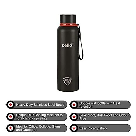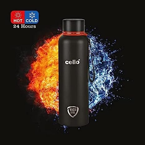 Cello Duro Tuff Steel Series Kent Flask | Hot and Cold Stainless Steel Water Bottle | Durable DTP Coating |Vacuum Insulated Bottle for Travel, Home, Office, School | 750 ml, Black