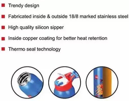 This is the perfect Bottle to carry to School.The grip of this bottle makes it more useful.Cello has kept in mind the needs of its customers and has developed a superior technology which will keep the liquid inside the bottle fresh and will help to maintain a steady temperature.Carry this bottle and add a style statement of its own.