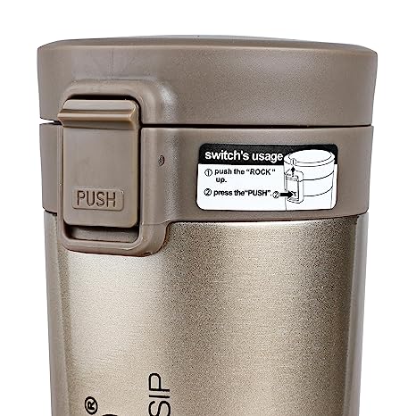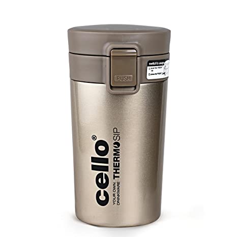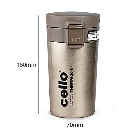 Cello Monty Vacuum Insulated | Travel Coffee Mug Hot and Cold with Lid | Double Walled Carry Flask for Travel, Home, Office, School | 300ml, Gold/Grey (Stainless Steel)