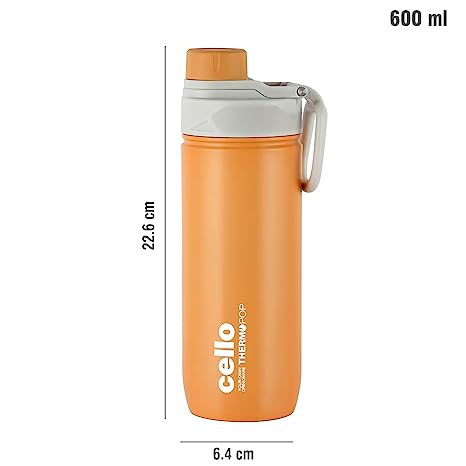 BUY Cello Pop Vacuum Insulated Flask | Hot and Cold Water Bottle | Double Walled Sports Bottle for Travel, Home, Office, School | 600ml, Orange at www.kitabwalastore.com