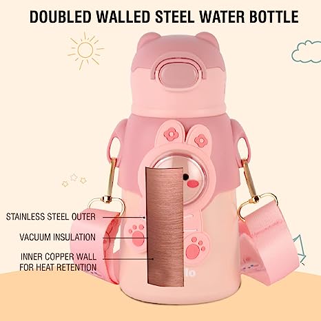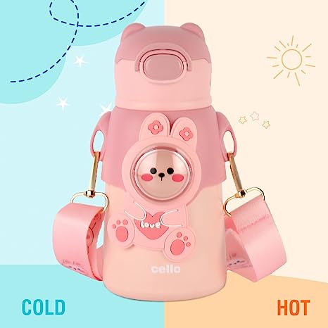 Funz Hot & Cold Stainless Steel Kids Water Bottle, 550ml, Pink