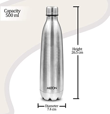 BUY Milton Apex 500 Thermosteel Hot & Cold Water Bottle, 500 ml, Silver at www.kitabwalastore.com