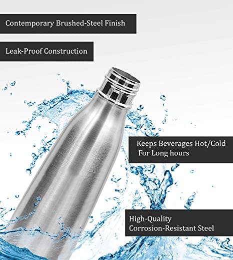 • Insulation type: Double wall; Temperature retention: Yes (Keeps liquid hot/cold upto 24 hrs); Leak proof: Yes
