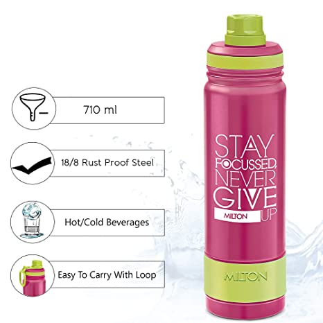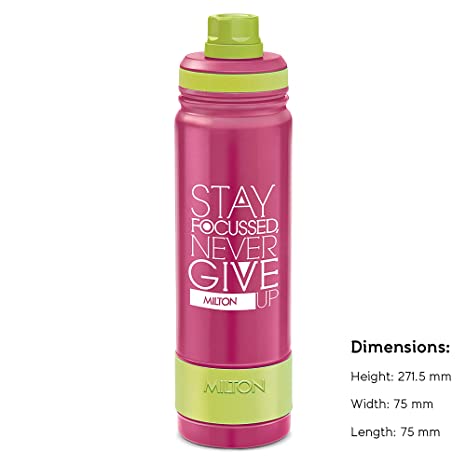 Milton Thermosteel Bottle is made of 18/8 stainless steel form inside and outside for better heat retention and the double vacuum insulated body keep beverages hot and cold for longer hours