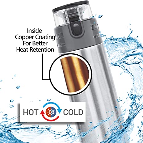 Inner copper coating for better temperature retention. Vacuum insulated technology keeps beverages Hot or Cold for hours