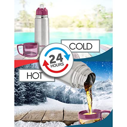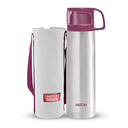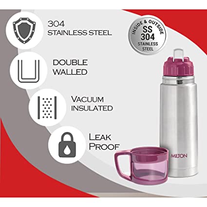 Milton Glassy 350 Thermosteel 24 Hours Hot and Cold Water Bottle with Drinking Cup Lid, 350 ml, Pink | Leak Proof | Office Bottle | Gym Bottle | Home | Kitchen | Hiking | Trekking | Travel Bottle