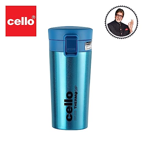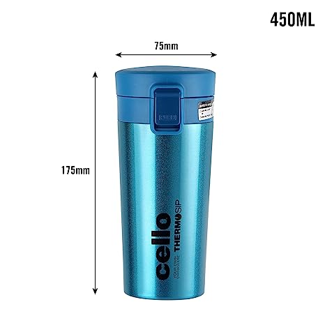 Material: Stainless steel, Pack content : 1 Mug with flip lid, Capacity: 450ml , Color: Blue