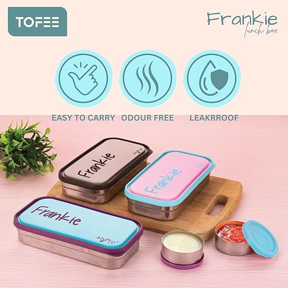 Name : Small Frankie Stainless Steel Lunch Box with 1 Small Box Compact Design Airtight Leak Proof Lunch Box for Office, School, Picnic,Lunch Box for Kids,School,Girls,Boys (PINK)