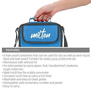 Milton New Meal Combi Lunch Box, 3 Containers and 1 Tumbler, Cyan | Food Grade | Light Weight | Dishwasher Safe | Microwave Safe | Easy to Carry | Leak Proof | BPA Free (Plastic)