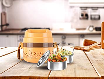Carry your home cooked food in style with Insulated lunch box. Made of food grade material, the containers are 100% stainless steel. Carry-case