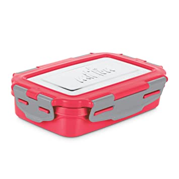 MILTON Steely Super Deluxe Insulated Inner Stainless Steel Big Tiffin Box, 500 ml, with Inner Stainless Steel Container, 175 ml and Spoon, Red | Kids Lunch Box | Easy to Carry | Easy to Clean